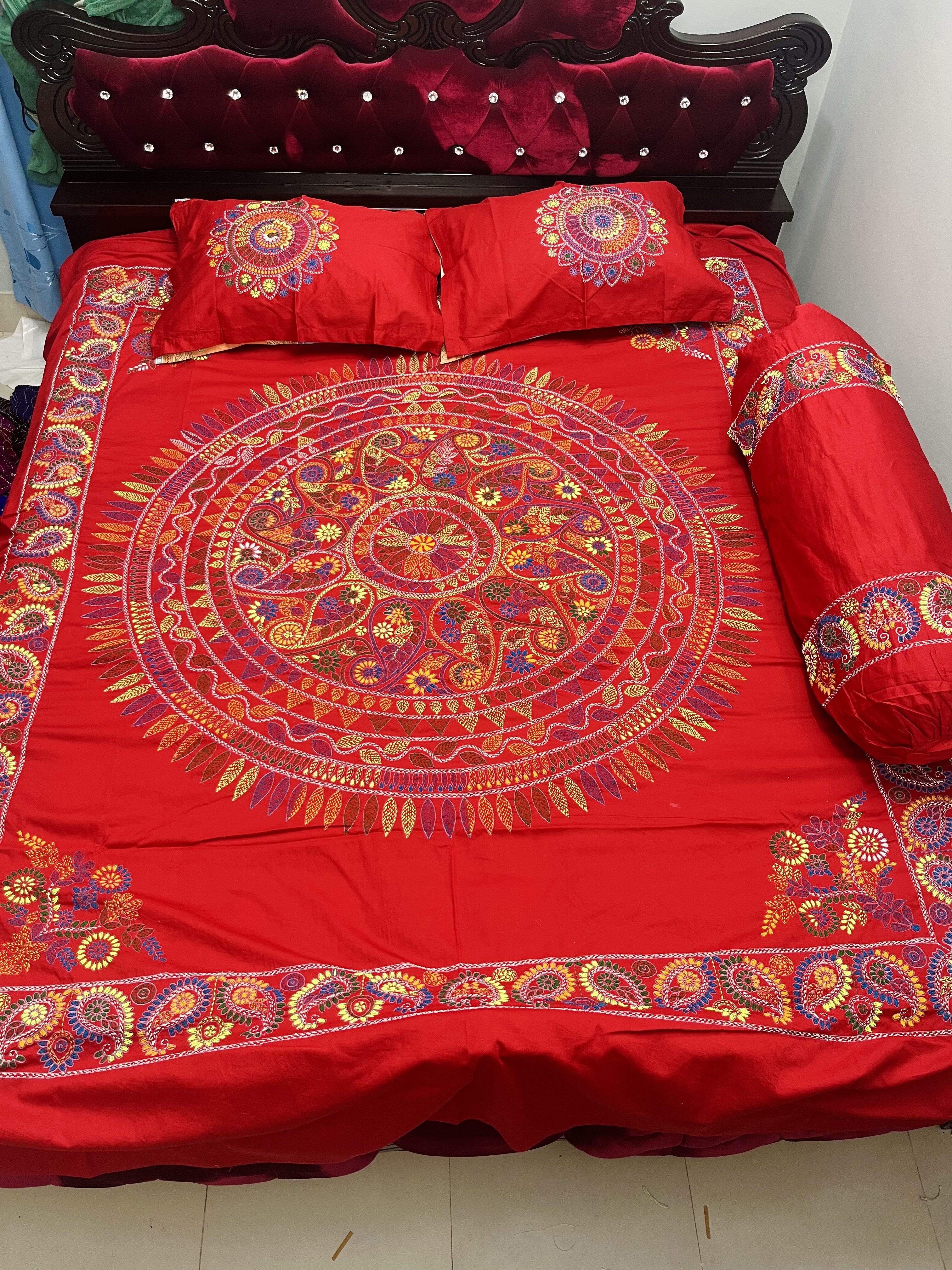 * ১ টা বিছানার চাদর ও দুইটা মাথার বালিশের কভারও ১ টা কোলবালিশের কভার ।