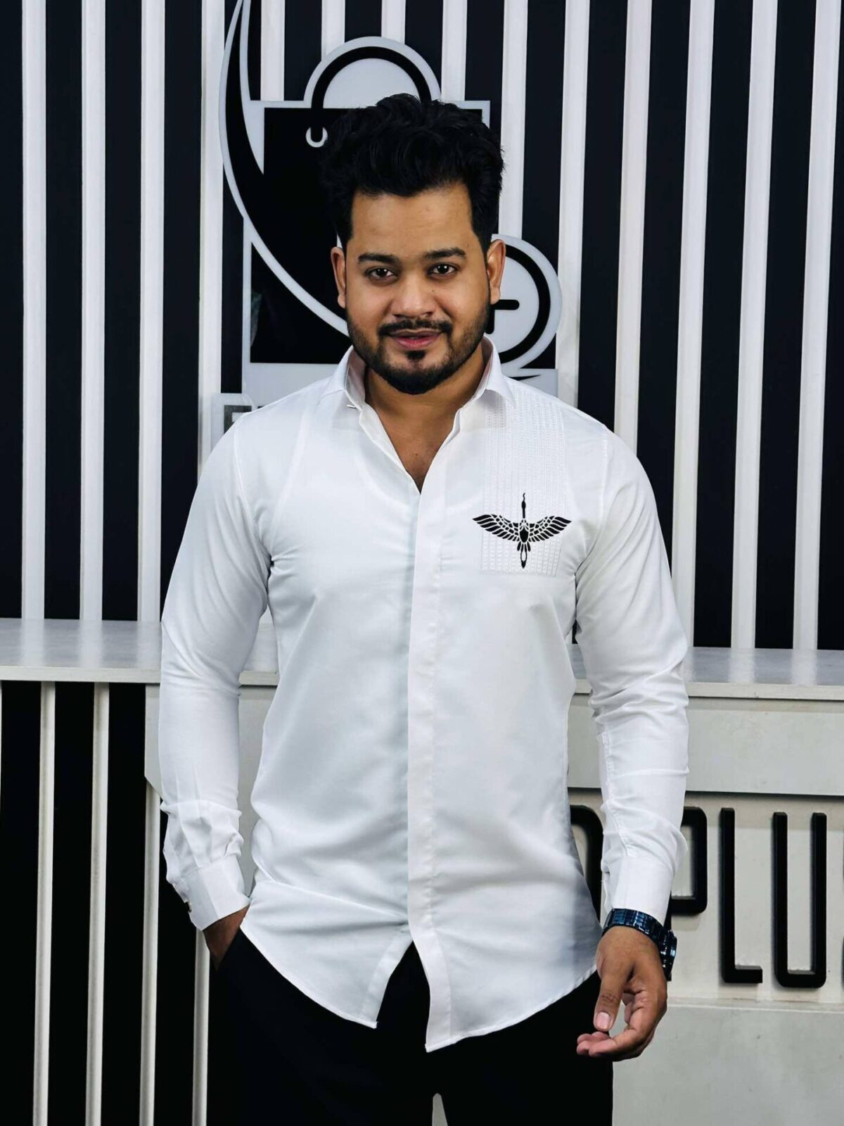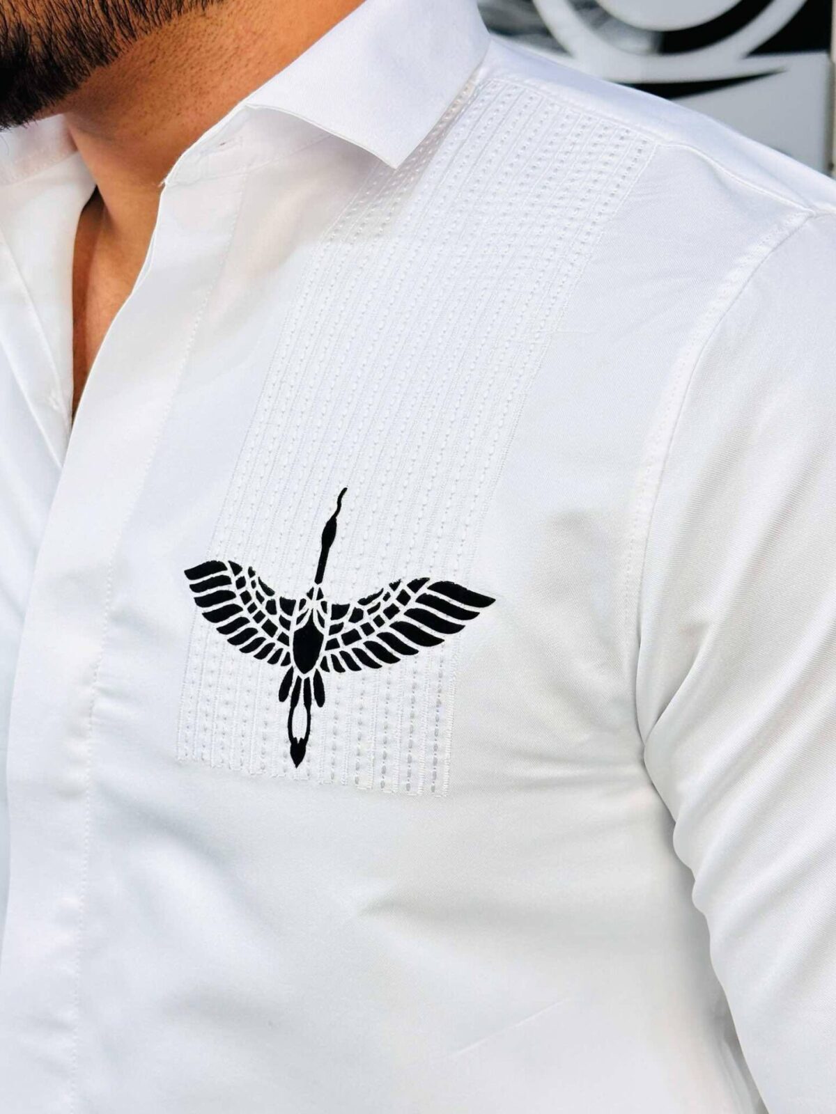 “Introducing our Full Sleeve Party Shirt – where elegance meets artistry. This shirt features intricate embroidery on the chest, highlighted by a subtle floral print that adds a touch of nature’s beauty. Perfect for those special occasions when you want to make a statement.”