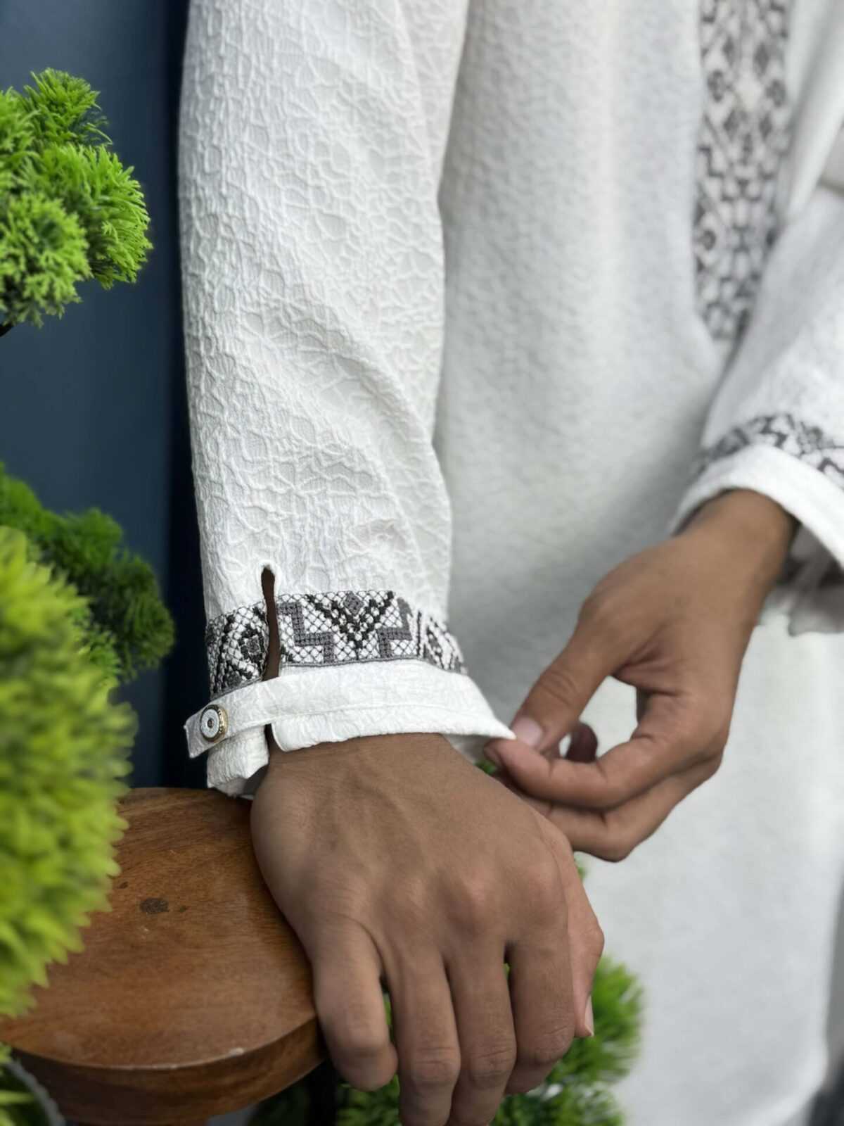 Elevate your traditional style with this elegant white Panjabi crafted from premium China Imported Popcorn Texture fabric. The unique textured material offers a soft feel, breathable comfort, and a refined look perfect for any occasion.